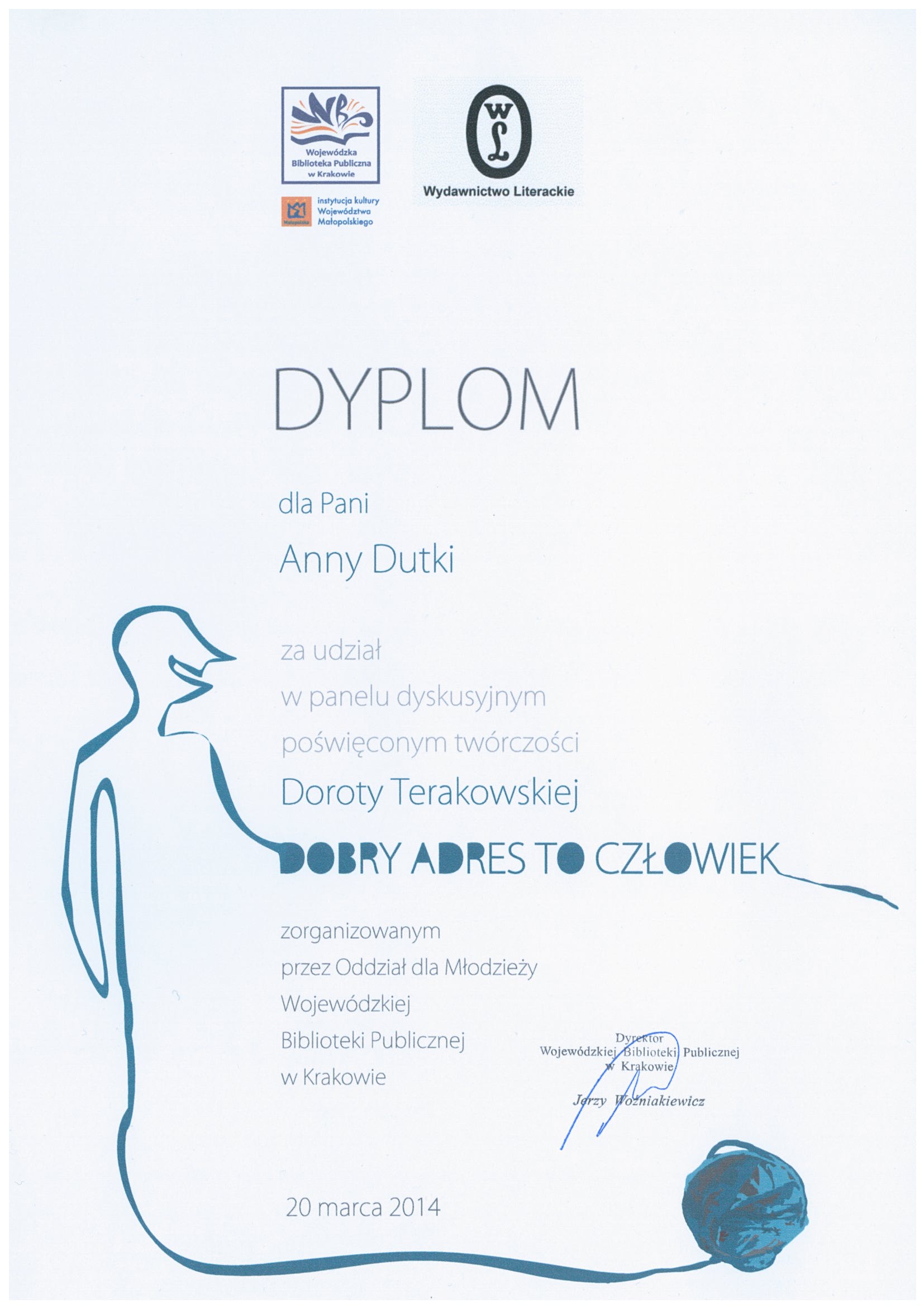 Zostałam niedawno zaproszona przez Wojewódzką Bibliotekę Publiczną w Krakowie, Oddział dla Młodzieży do udziału w dyskusji o twórczości Doroty Terakowskiej. Chodziło o pokazanie, że Terakowska jest uniwersalną pisarką, której książki czyta się nieustannie, bez względu na wiek, wykształcenie, wykonywany zawód. W panelu wzięła udział czwórka uczniów III klasy Gimnazjum nr 16 w Krakowie, doktorant specjalizujący się w literaturze dla dzieci i młodzieży, ksiądz, ekonomistka i ja, jako członkini dyskusyjnego klubu książki.